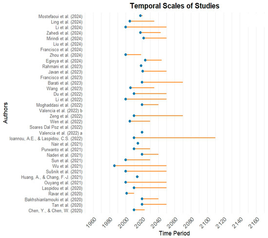 In most of the works analysed, the economy was modelled exogenously, with economic variables, such as GDP, treated as fixed inputs. This approach reflects the use of external economic data or growth rates to drive the model’s behaviour, rather than integrating economic variables endogenously within the system. This exogenous modelling approach was prevalent, particularly in studies that focused on the impact of economic growth on resource demand.