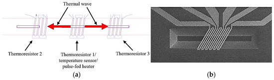 Gas calorimetry is a method to determine a gas’s calorific value by measuring the energy released during combustion. In laboratory settings, a fluid such as water is used to assess the calorific value; it is heated during combustion, and its temperature is recorded. However, these methods often require frequent calibration. In microsystem technology, piezoresistive or electromotive force generation (Seebeck effect) techniques are employed. In the example of a MEMS thermal conductivity sensor discussed below [36], miniature thermocouples are utilized (Figure 4).