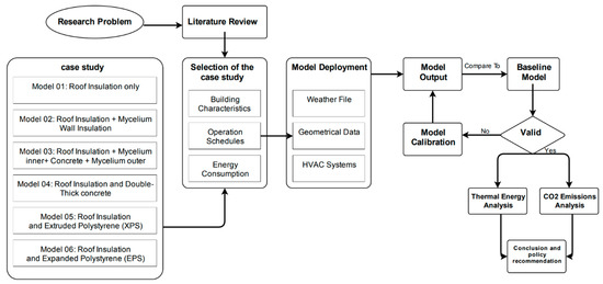In the context of energy-efficient building design, mitigating heat gain in challenging climates emerges as a paramount passive strategy to curb energy consumption. This tactic assumes particular significance in the case of fully air-conditioned structures, notably residential buildings. To assess the energy performance of a residential building in the arid climate of Doha, Qatar, a comprehensive investigation was conducted using the dynamic simulation tool DesignBuilder. The research methodology adopted for this study is graphically depicted in Figure 1, delineating the systematic approach taken to evaluate the building’s thermal performance and assess the impact of various heat gain reduction techniques in this demanding environmental context.
