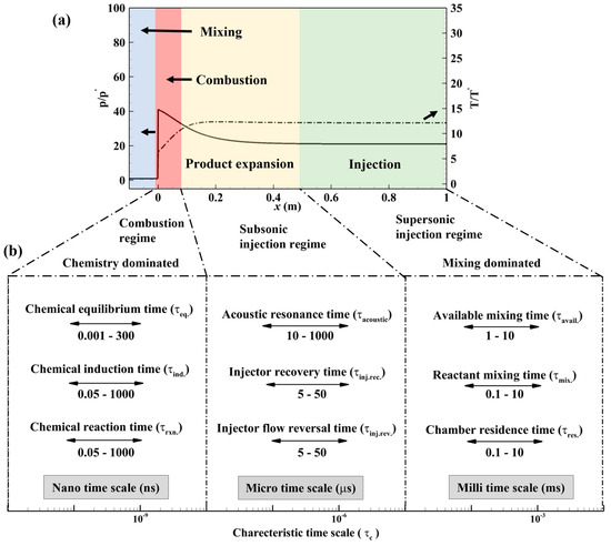- Dave, R.T.; Burr, J.R.; Branch, R.C.D.; Ross, M.C.; Bennewitz, J.W. Timescale Analysis for a Standard Rotating Detonation Rocket Engine. In Proceedings of the 29th ICDERS, Seoul, Republic of Korea, 23–28 July 2023. [Google Scholar]