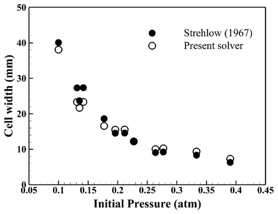 - Strehlow, R.A. Cell Width vs. Initial Pressure; C2H4-O2-Ar. 1969. Available online: https://shepherd.caltech.edu/detn_db/html/C2H4-Ox1.html (accessed on 1 May 2007).