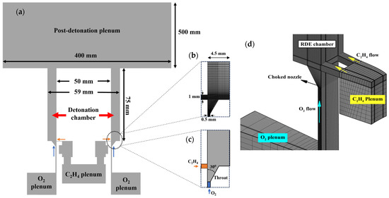- Sato, T.; Chacon, F.; White, L.; Raman, V.; Gamba, M. Mixing and detonation structure in a rotating detonation engine with an axial air inlet. Proc. Combust. Inst. 2021, 38, 3769–3776. [Google Scholar] [CrossRef]