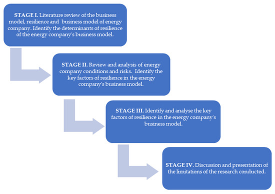 Stage I involved a literature review of the business model, resilience, and resilience of the business model, as well as approaches to measuring resilience, including business model resilience. The determinants of business model resilience relating to the general characteristics of the energy company’s business model are as follows [65,66]: