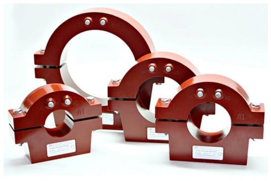 External view of TZRL measuring transformers of different sizes (Description of the transformer type designations: T—current transformer; Z—for ground fault protection; R—split-core (or separable); L—with cast insulation).