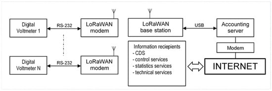 The structure of the primary segment of the information technology network includes wireless information transmission systems from zero-sequence voltage monitoring devices, a receiving base station, and an accounting server. When using the Internet, the accounting results can be made available to many interested services (CDS—Central Dispatching Service) (see Figure 20).