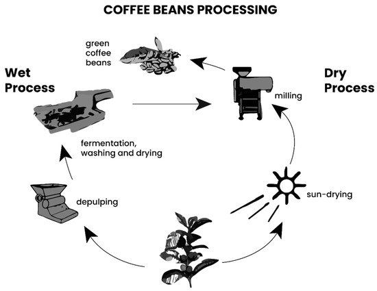- Irawan, A.; Rabemanolontsoa, H.; McLellan, B.C. Comprehensive Environmental Impact Analysis of Dry Processing Methods for Specialty Coffee Beans in Bondowoso, Indonesia Using Life Cycle Assessment. Biomass 2024, 4, 843–864. [Google Scholar] [CrossRef]