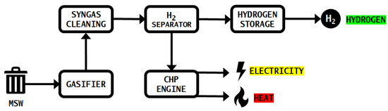 - Hognert, J.; Nilsson, L. The small-scale production of hydrogen, with the co-production of electricity and district heat, by means of the gasification of municipal solid waste. Appl. Therm. Eng. 2016, 106, 174–179. [Google Scholar] [CrossRef]