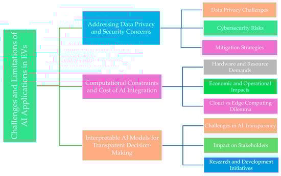 - Computational Constraints and Energy Overhead: Most AI algorithms require substantial computational power, particularly DL, NNs, and RL. On-board vehicle processors have limited hardware resources, and real-time AI operations can significantly increase power consumption, reducing overall energy efficiency. Unlike cloud-based AI, which can leverage high-performance GPUs and distributed computing, on-board AI must operate with energy-efficient embedded processors [88].