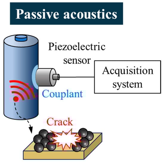 - Ramos, I.E.; Coric, A.; Su, B.; Zhao, Q.; Eriksson, L.; Krysander, M.; Tidblad, A.A.; Zhang, L. Online acoustic emission sensing of rechargeable batteries: Technology, status, and prospects. J. Mater. Chem. A 2024, 12, 23280–23296. [Google Scholar] [CrossRef]