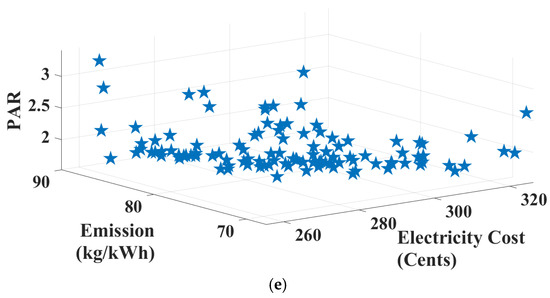 - The impacts of diverse weight factors in the multi-objective problem to control the proposed three objective functions—electricity cost, PAR, and emissions—are considered for economic, technical, and environmental benefits. Multi-objective optimization using the weight method allows the users to set trade-offs among the energy costs, PAR, and emissions based on their policies;
