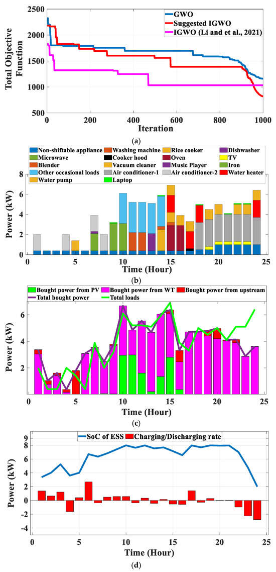 - The suggested HEMS integrates diverse energy resources, such as PV, WT, ESS, and the upstream grid. In order to reduce economic costs, the capabilities of ESS in charging/discharging can shift the load demand into the low-tariff periods;
