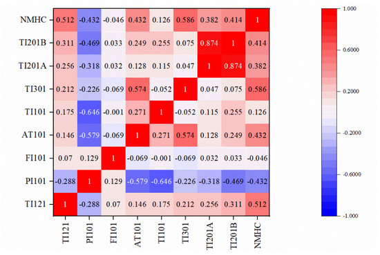 | Correlation with Non-Methane Hydrocarbon (NMHC) | TI121 | PI101 | FI101 | AT101 | TT101 | TI301 | TI201A | TI201B |