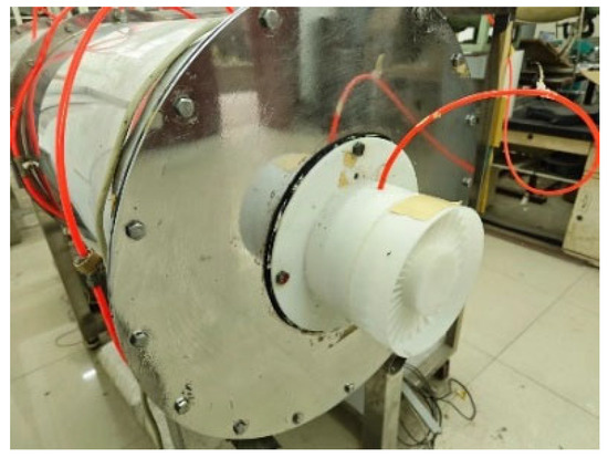 - Fukutomi, J.; Nakamura, R. Performance and Internal Flow of Cross-Flow Fan with Inlet Guide Vane. JSME Int. J. 2005, 48, 763–769. [Google Scholar] [CrossRef]