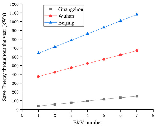 Comparison of Annual Energy-Saving Benefits from Ventilator Energy Recovery in Three Typical Cities (kWh).