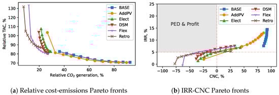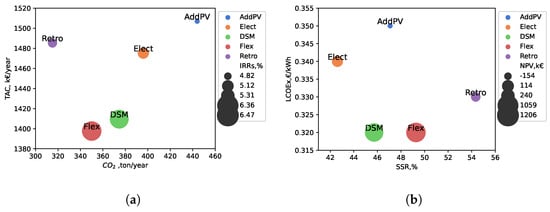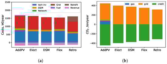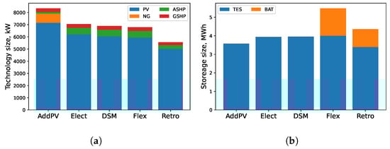 The input data used in this work, namely, the hourly profiles of the solar irradiance, the ambient temperature, various energy demands, and ToU tariff, are shown in Figure A1a–h. For the Retro scenario, the spacing heating demands are shown in Figure A1i.