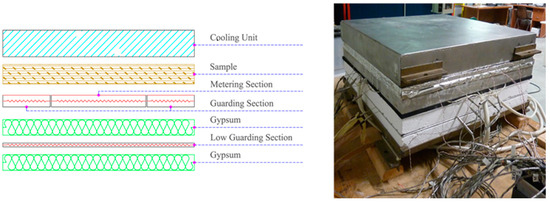 - International Standard EN 12664:2001; Thermal Performance of Building Materials and Products—Determination of Thermal Resistance by Means of Guarded Hot Plate and Heat Flow Meter Methods—Dry and Moist Products of Medium and Low Thermal Resistance. British Standards Institution: London, UK, 2001.