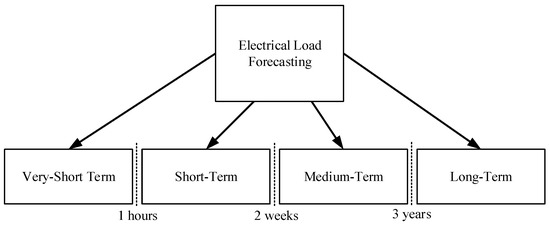 The field of load forecasting can be categorized into four distinct types, as determined by the length of the prediction time interval. Figure 1 [4] illustrates the categorization according to their respective forecasting time.