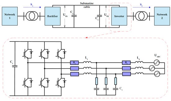 New semiconductor technology includes SiC (silicon carbide), which could offer benefits for grid development. There has been remarkable development in monitoring electrical systems through the implementation of Supervisory Control and Data Acquisition (SCADA) systems []. The recent implementation of Controllable Line-Commuted Converter (CLCC) technology improves the performance and stability of HVDC systems. The advanced VSC-based converters using MMC technology will be most beneficial and applicable for upcoming HVDC projects [], the converter topology for which is shown in Figure 2 below.