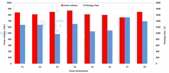 In the formula: V0—initial foam volume, mL; t1/2—Liquid drainage half-life, s.