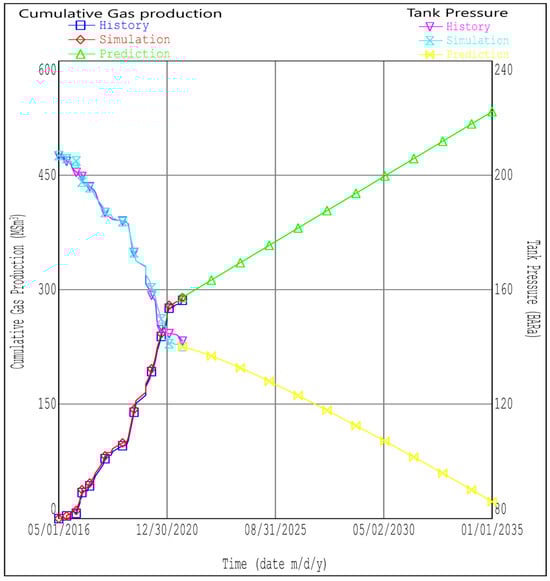 represent the measured tank pressure at various cumulative-gas-production volumes within the provided history).