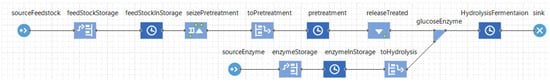 9]. For instance, the refinery’s ethanol production process involves eight sequential stages: grain receiving and storage, milling, cooking, liquefaction, fermentation, distillation, molecular sieve and denaturant, and ethanol storage. Initially, grain (typically corn) received from farms or storage facilities is processed through the grain receiving, storage, and milling stages, and during liquefaction, enzymes decompose the grain’s starch into a liquid substance known as mash [