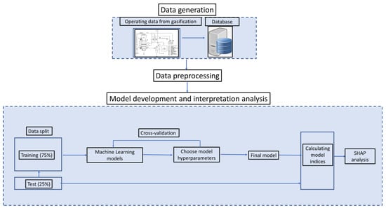 Machine learning (ML) has emerged as a powerful tool for predictive modeling and optimization in gasification and hydrogen production processes [2,3,4]. Unlike traditional mechanistic models, ML approaches learn patterns from experimental and industrial datasets, making them well suited for handling the non-linearity and high-dimensionality of gasification processes [5,6]. However, a major drawback of some ML models, such as deep neural networks (DNNs), is their black-box nature, which limits interpretability and hinders trust in industrial applications [7].