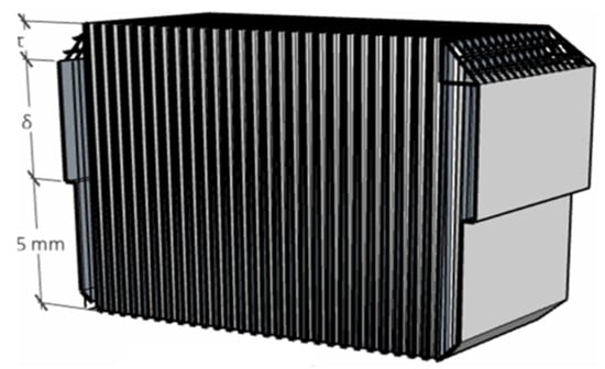 Avila-Marin et al. [39] investigated the impact of three geometric parameters—the chamfer height, angle, and the height of the straight protruding side—on the thermal efficiency of standard cup volumetric absorbers, as illustrated in Figure 7. In their study, 126 different geometric configurations were analyzed using a two-dimensional CFD model combined with an LTNE model and the Rosseland approximation for the volumetric absorber. The results showed that increasing the chamfer height led to a decrease in the air temperature at the outlet. Additionally, the effect of the protruding absorber parameter was influenced by two possible boundary conditions—the inlet fluid velocity and the wall temperature—with the latter producing a higher air outlet temperature.