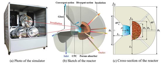- Zhang, H.; Shuai, Y.; Lougou, B.G.; Jiang, B.; Yang, D.; Pan, Q.; Wang, F.; Huang, X. Effects of foam structure on thermochemical characteristics of porous-filled solar reactor. Energy 2022, 239, 122219. [Google Scholar] [CrossRef]