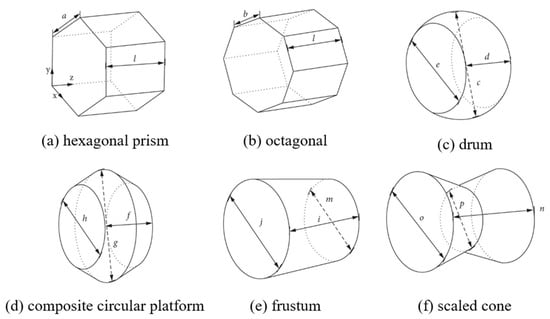 Li et al. [53] investigated six types of PSRs (hexagonal prism type, octagonal type, drum type, composite circular platform type, frustum type, and scaled cone type) to analyze how the structural shape affects the outlet temperature and pressure drop of the heat transfer fluid (HTF), as shown in Figure 12. The local non-thermal equilibrium model and P1 approximation method were applied to describe the heat transfer process. The findings indicate that the drum-type structure demonstrates the highest thermal efficiency among the six structures.
