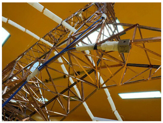 Compared to transmission lines and transmission towers, insulators are smaller, but their stiffness is higher. The insulators are considered as the two-force members with both ends being hinged. The red copper tube is adopted as the mandrel, and the umbrella-shaped ABS plastic plate with 10 mm intervals is adopted as the wave-shaped appearance of the insulator.