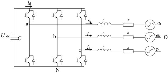 The grid-side inverter uses an IGBT three-phase full-bridge inverter, which has the same structure as the machine-side rectifier, but the direction of energy flow is opposite, and the switching function definition is the same as the machine-side rectifier. The three-phase full-bridge inverter circuit topology is shown in Figure 3.
