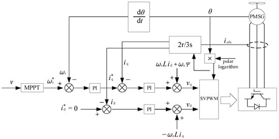 In a direct-drive wind turbine, the back-to-back converter isolates the machine-side mechanical and electrical system from the power grid, so that the control objective of the machine-side part can remain unchanged throughout the entire operation. Normally, the control objective of the machine-side part is to maximize the wind turbine’s wind energy capture, which requires the rotor speed of the permanent magnet synchronous generator to stably and quickly track the optimal rotor speed of the wind turbine under different wind speeds.