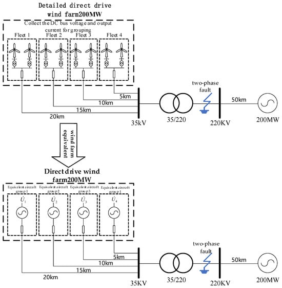 Finally, the overall fault transient equivalent model of the wind farm was derived through the principle of power conservation, and its accuracy and adaptability were validated through simulations under various operating conditions.