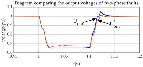 Detailed model and equivalent model machine-side output voltage error under two-phase faults.