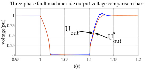 Detailed model and equivalent model machine-side output voltage error under three-phase faults.