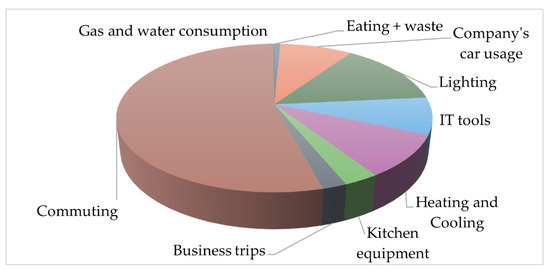 Regarding work, some studies, including ours, show that commuting influences the carbon footprint, with the most amount accounting for about 55% of total emissions in a typical office. It was followed by lighting (14%) and IT equipment usage (8%).