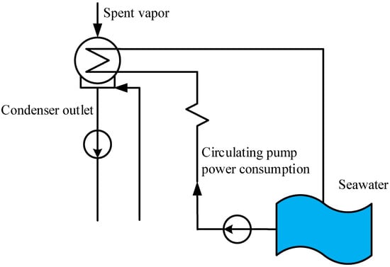 Temperature sensors on the seawater side help optimize the unit’s operating conditions for efficient performance. The seawater temperature is input to the condenser optimization program, which adjusts the pump and condenser operation. However, the condenser’s response takes time to reach the optimal point due to the pipeline’s characteristics. Flow changes require time, and temperature transfer is delayed because it depends on heat exchange within the pipeline. After the optimization process, the unit achieves the best operating conditions for the cooling water system [26].
