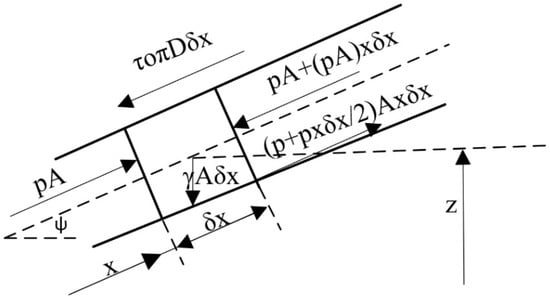 The wall shear stress in a steady-state condition for a horizontal pipeline with length L and diameter D can be calculated using Darcy’s formula. The shear stress equals the resistance calculated by Darcy’s formula, as shown in the following equation: