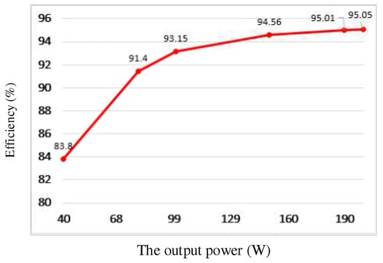 Figure 15 shows the efficiency of the proposed LED driver in the whole range of load. The maximum efficiency is at 95.05% at the maximum output power of 200 W.