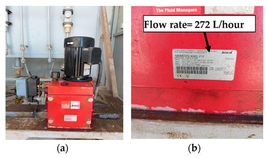 As shown in Figure 3c, the existing sulfuric acid pump is unsuitable for the process and must be replaced. As shown in Figure 4a, the new sulfuric acid dosing pump was installed in place of the existing sulfuric acid pump. Figure 4b shows the nameplate of the new sulfuric acid dosing pump. Ref. [] is the new sulfuric acid dosing pump document.