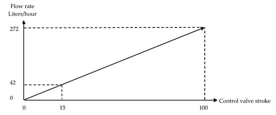 The relationship between the dosing pump flow rate (Q) and the control valve stroke (VS) is shown in Figure 5 and described in Equation (1).