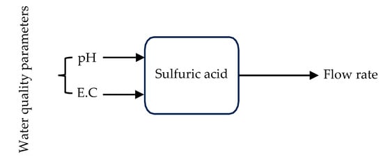 The mathematical model of the pH system is represented by a first-order plus dead-time (FOPDT) system, as shown in Equation (3) []: