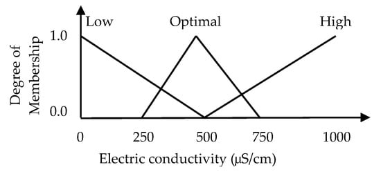 - Chen, C.-H.; Jeng, S.-Y.; Lin, C.-J. Fuzzy Logic Controller for Automating Electrical Conductivity and pH in Hydroponic Cultivation. Appl. Sci. 2021, 12, 405. [Google Scholar] [CrossRef]