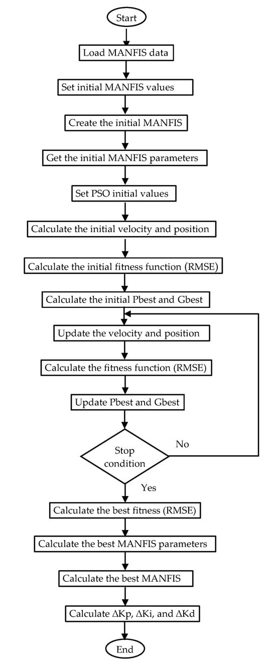 In the future, the PSO–MANFIS algorithm will be used as a real-time dynamic tuner for the PLC-based PID controller; it will dynamically tune the PLC-based PID controller parameters (proportional, integral, and derivative) in real time. The term “PLC-based PID controller” refers to the built-in PID controller inside the PLC.