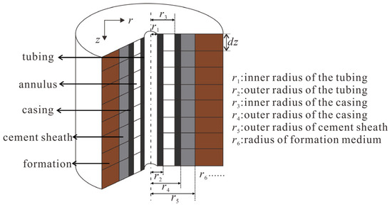 The heat transfer mechanisms in the cement sheath and formation are characterized by axial and radial thermal conduction. The heat transfer model for both the cement sheath and formation is formulated as follows: