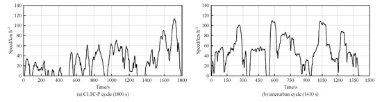 (a) The CLTC-P driving cycle and (b) the common interurban cycle.