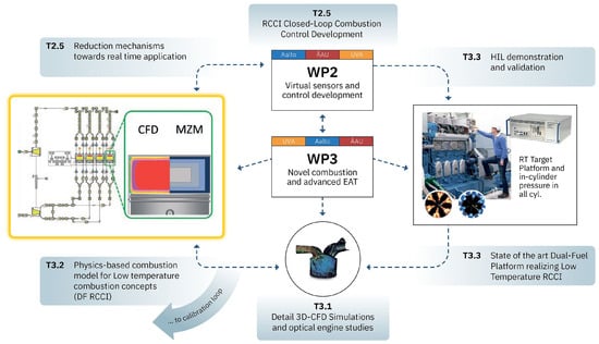 Interlinking the activities of the University of Vaasa in WP2 (task T2.5) with the model-based development framework for the innovative RCCI concept in WP3. Adapted from CPT presentation by Mikulski, M. [22].