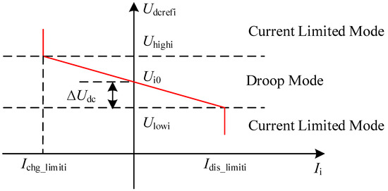 The grid-connected inverter in the PR connects with the public power grid. Under normal operating conditions, the inverter and grid can serve as ideal power balance points: when the system power is insufficient, the grid supplies power to the system’s DC bus through the inverter; when the system has surplus power, the DC bus feeds energy back to the grid through the inverter. Therefore, the grid-connected inverter is the DC voltage control terminal, which can maintain a constant PR DC bus voltage. Additionally, current limiting segments are typically set into the inverter control loop to ensure that the converter automatically enters current-limiting mode when the bidirectional power becomes excessive. In Figure 2, indicates the maximum allowable voltage variation for the corresponding converter.