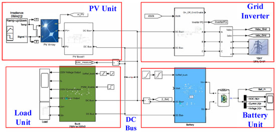 To verify the effectiveness of the hierarchical coordinated control adopted in this PR, a simulation model was built in Simulink, as shown in Figure 9.