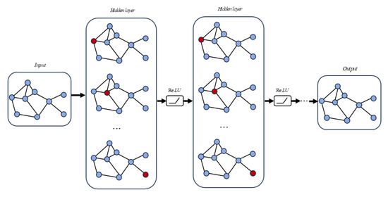 Graph convolutional networks (GCNs), proposed by Kipf in 2016 [36], are deep learning models designed for graph-structured data. The core idea of graph convolution is to aggregate node information using edge information, thereby generating new node representations. The essential goal is to extract spatial features from the topology of the graph. Through multiple layers of graph convolution, as shown in Figure 4, the GCN enables information interaction and feature propagation at the node level, allowing it to extract both global and local features from the graph structure.